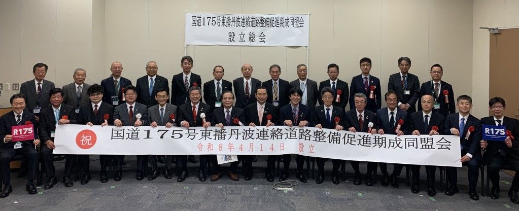 令和8年4月14日(火曜日)に、東播丹波連絡道路のうち未事業化区間である西脇市黒田庄町から丹波市氷上地域までの早期開通を目指し、丹波市・西脇市の両市で「国道175号東播丹波連絡道路整備促進期成同盟会」を設立しました。